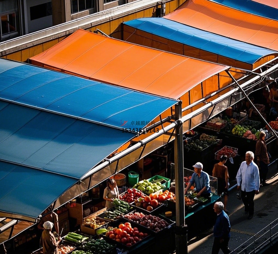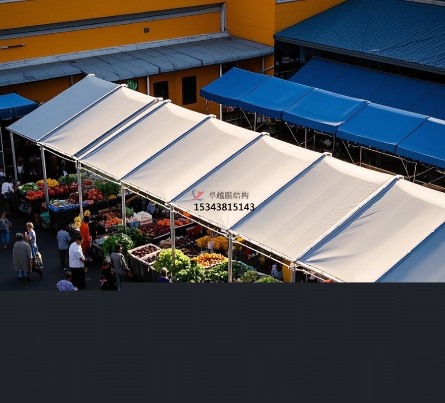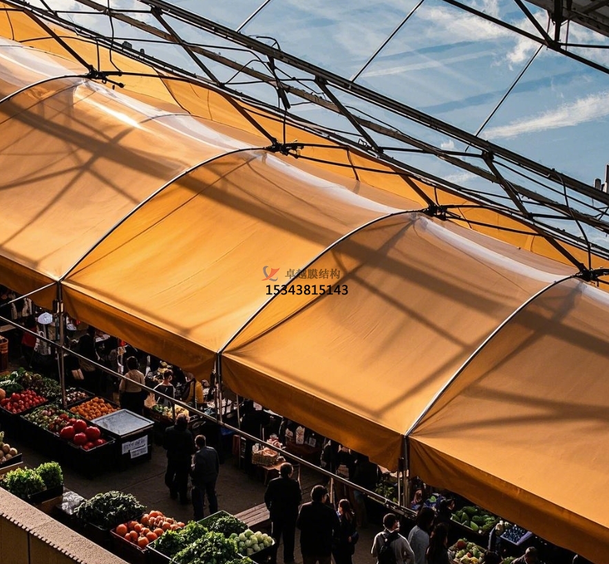 在城市的煙火氣味中,農貿商場是不可或缺的存在,它承載著新鮮食材的匯聚與居民日常生活的快捷。但是,傳統(tǒng)農貿商場頂棚在長期運用中暴露出許多問題,如年久失修易漏雨、空間布局局促、外觀陳腐等。膜結構頂棚的出現(xiàn),宛如一陣清風,為農貿商場帶來了全新的生機與革新。
