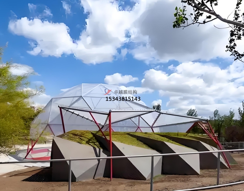 從設(shè)計(jì)角度來看,景觀膜結(jié)構(gòu)有著無與倫比的優(yōu)勢。其形態(tài)具有多樣性,能夠根據(jù)不同的場地條件、功能需求以及審美偏好,設(shè)計(jì)出千變?nèi)f化的造型。在城市公園中,常常能看到造型如靈動(dòng)飛鳥的膜結(jié)構(gòu)亭子,其流暢的曲線與公園的自然環(huán)境相得益彰,為游客提供了別具一格的休憩空間;在商業(yè)廣場,可能會(huì)有巨大的穹頂式膜結(jié)構(gòu),以其宏大的規(guī)模和獨(dú)特的造型吸引人們的目光,成為廣場的標(biāo)志性建筑。而且,景觀膜結(jié)構(gòu)對(duì)環(huán)境有著良好的適應(yīng)性,無論是自然風(fēng)光旖旎的景區(qū),還是高樓林立的城市街區(qū),它都能巧妙融入,通過合理的設(shè)計(jì),不僅不會(huì)顯得突兀,反而能為周邊環(huán)境增添獨(dú)特的韻味,成為新的景觀焦點(diǎn)。