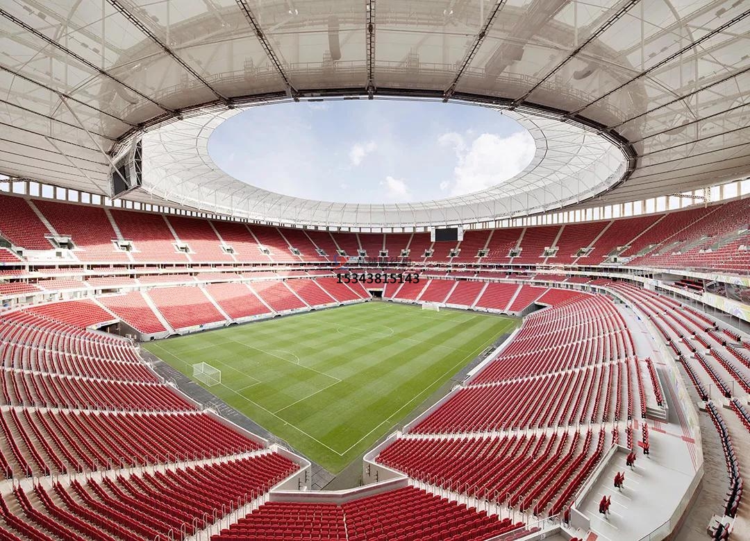 球場膜結(jié)構(gòu)景觀應用形式:其應用形式主要有球場頂棚、看臺設計、球場圍網(wǎng)和休息區(qū)遮陽棚等。在球場頂棚可覆蓋整個球場,為運動員和觀眾遮陽、擋雨,其獨特的曲面造型還能增加球場的觀賞性??磁_設計方面可營造出寬敞、舒適的觀賽環(huán)境,并且易于安裝、拆卸,方便球場維護。膜結(jié)構(gòu)球場圍網(wǎng)輕盈、美觀,既能起到隔離作用,又不會影響球場整體美觀,使球場空間更具通透感。也可為觀眾或運動員提供休息的遮陽場所,造型上可以與球場整體風格相呼應,成為球場景觀的一部分。