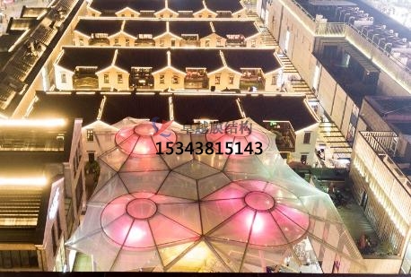 工程特點(diǎn):該項(xiàng)目是國(guó)內(nèi)好的單層ETFE加雙層氣枕膜完美嵌合的景觀雨棚建筑,利用ETFE膜材的高透光高自潔性以及雙層氣枕的隔熱能力,雨棚在具有遮陽擋雨功能的同時(shí)還可以實(shí)現(xiàn)自然采光,行人沒有傳統(tǒng)密封建筑的束縛感;另一方面,ETFE膜結(jié)構(gòu)建筑是當(dāng)代更新的建筑應(yīng)用形式之一,工程高度定制,顏值高,具有好的性,天生自帶聚集人氣光環(huán)。