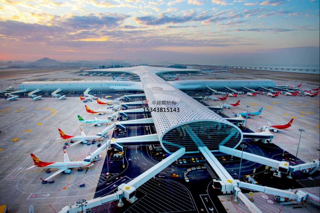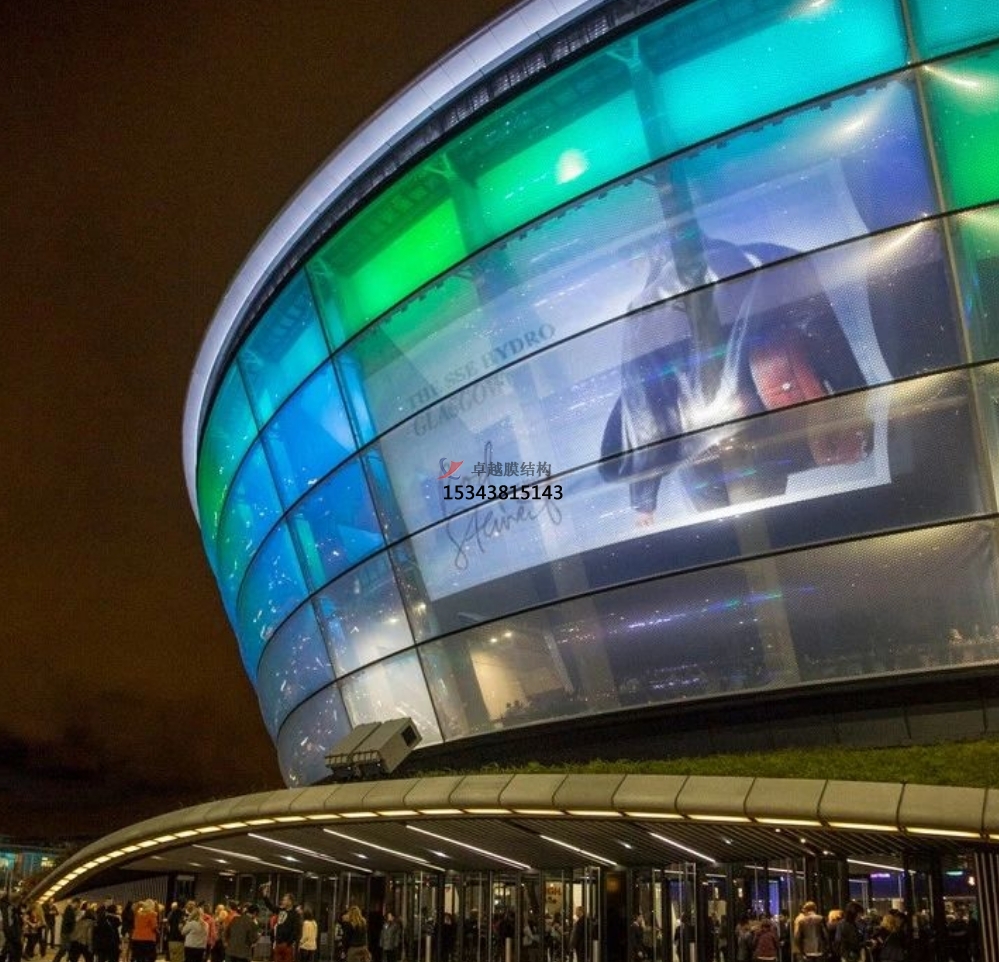 ETFE氣枕具有高度透明性,每層膜的透明度為90-95%,其透明度呈現(xiàn)于大部分太陽(yáng)光譜中,廣泛應(yīng)用于機(jī)場(chǎng),高鐵站,商業(yè)廣場(chǎng),城市建筑景觀等各類(lèi)標(biāo)志性建筑屋面系統(tǒng)及外立面裝飾,尤其是結(jié)合LED燈光效果將各類(lèi)結(jié)構(gòu)設(shè)施表現(xiàn)出無(wú)限的光彩和亮麗。