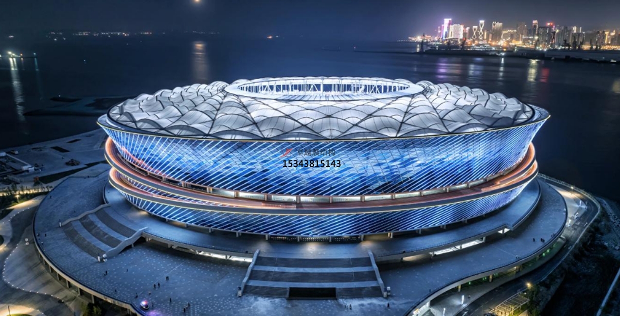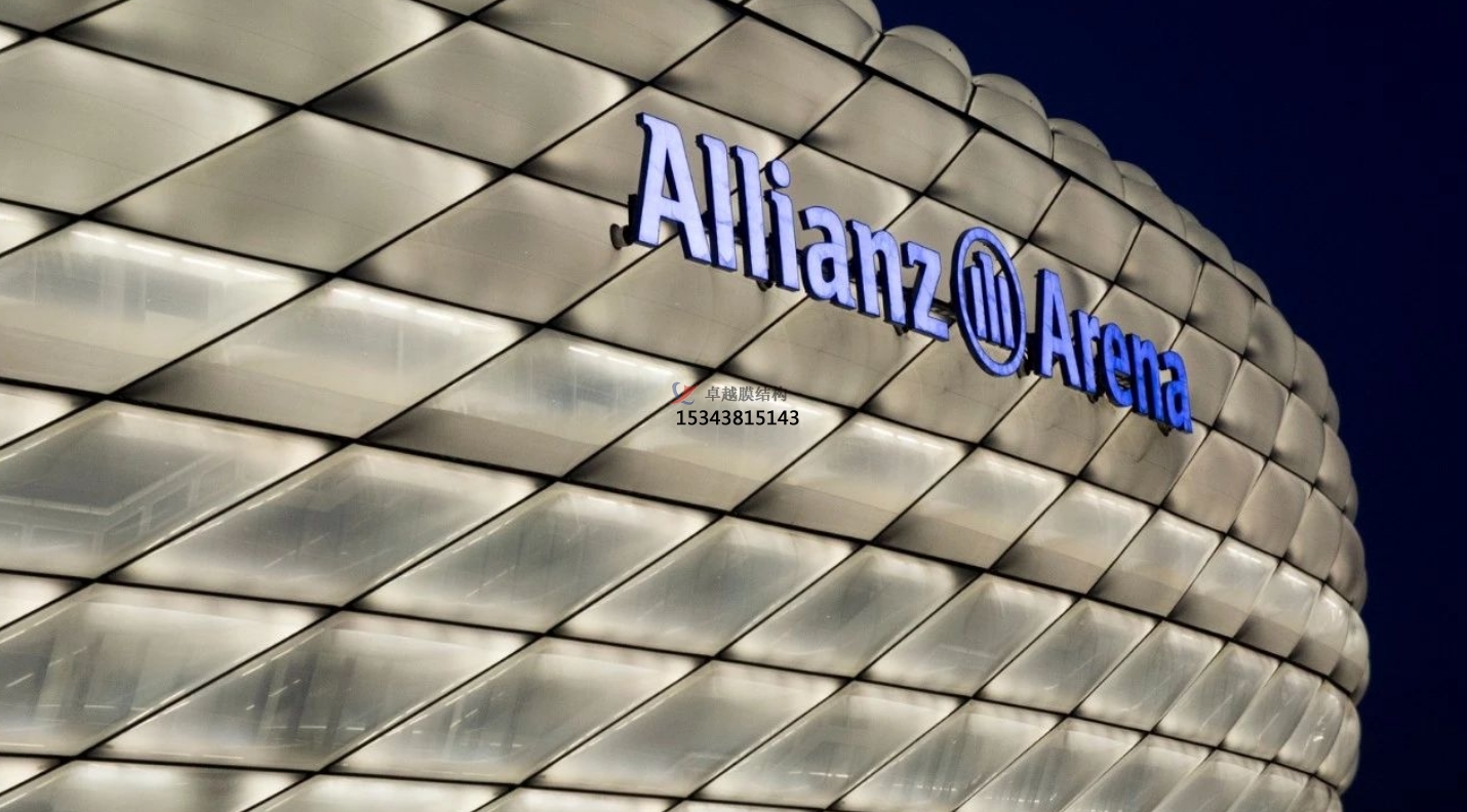 ETFE膜材是指由乙烯和四氟乙烯的共聚物制成的薄膜,有玻璃同等的透光效果,比玻璃更安全更輕盈,更有可塑性和創(chuàng)造性。結(jié)構(gòu)形式可以是單層或多層氣枕式,