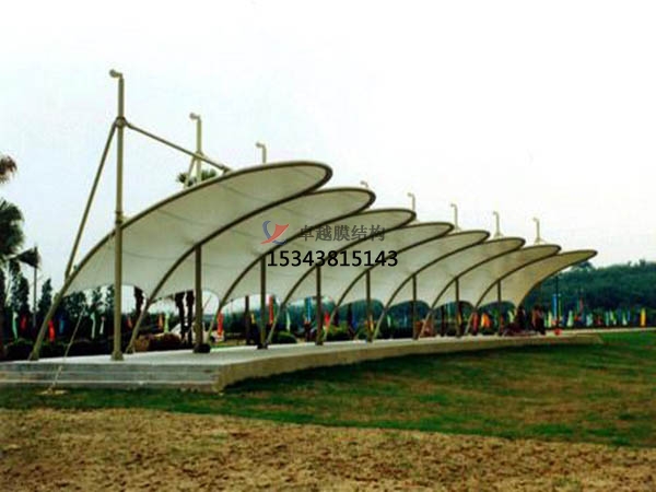 1.耐久性:由于高強度膜材料的出現(xiàn)和張拉技術的應用,膜結(jié)構(gòu)車棚的抗風雨能力是普通雨蓬無法比擬的。有些車棚使用長效膜材料,可使用30-40年。特別是在惡劣的暴風雨天氣,膜結(jié)構(gòu)保持牢固和無損。