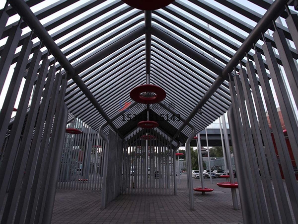 鋼結(jié)構(gòu)連廊使城市景觀逐漸走向美學,走向自然,它具有裝飾塑料藝術(shù)的特點,并結(jié)合了美學和實踐的特點,也顯現(xiàn)出了這片土地奇特的藝術(shù)性。