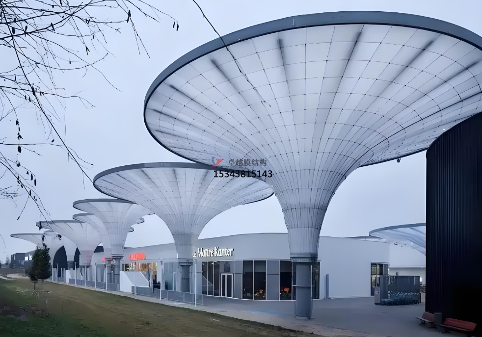 美國洛根機場 C 航站樓的 ETFE 頂篷集成太陽能電池板,發(fā)電能力覆蓋兩倍于雨棚照明需求,年減排二氧化碳 120 噸。其 2440 平方米的膜材通過智能調(diào)光系統(tǒng),可根據(jù)日照強度自動調(diào)節(jié)透光率,實現(xiàn)空調(diào)負荷降低 18%。