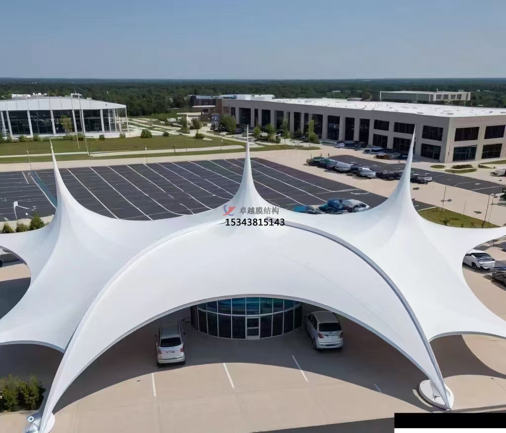 膜結(jié)構(gòu)遮陽雨棚使用壽命長(zhǎng),至少有30年以上,膜材遮陽遮雨防紫外線、40%透光率等等優(yōu)勢(shì),具有阻燃性和耐高溫性,能很好地滿足防火要求,鋼結(jié)構(gòu)抗風(fēng)抗震8級(jí)。