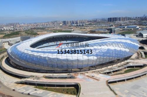 2、U形夾板連接 對受力大的膜,邊緣索直徑較大,長度較長,索頭錨具為熱鑄或冷鑄,索頭尺寸大,難于直接穿膜套,可采用U形件夾板連接節(jié)點。