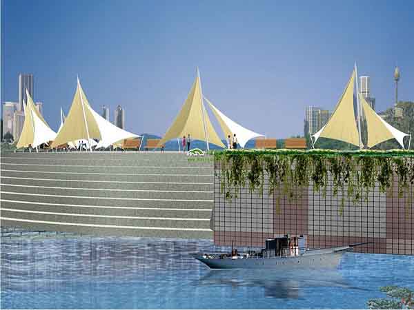 工程結(jié)構(gòu)形式:骨架式膜結(jié)構(gòu)景觀,自然排水。