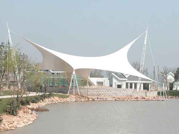 2、膜結(jié)構(gòu)具有輕盈穩(wěn)定的結(jié)構(gòu)特性,其重量是傳統(tǒng)建筑的三十分之一,利用這一特點能設(shè)計和組織結(jié)構(gòu)細(xì)部構(gòu)件,創(chuàng)造巨大的無遮擋可視空間。膜材表面的防護涂層(PVDF,PTFE等),具有耐高溫的特點,而且本身不發(fā)粘,落到膜材表面的灰塵能靠雨水的自然沖洗而達到自潔效果。 下面大家一起來了解一下我司在舟山市周邊縣市完工的一些膜結(jié)構(gòu)景觀案例:
