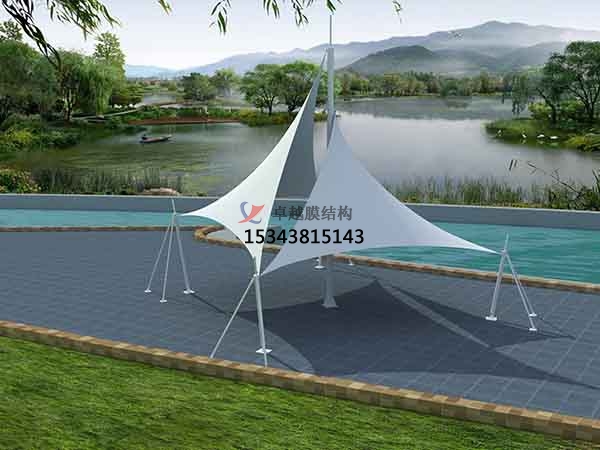 2、景觀膜結(jié)構(gòu)是目前發(fā)展很快的一種新型空間結(jié)構(gòu),是一種效率極高的張力集成體系,可以充分發(fā)揮鋼索的強度與張拉整體結(jié)構(gòu)的空間作用。它通過鋼骨架、鋼索與膜材共同受力形式穩(wěn)定曲面來覆蓋建筑空間,具有高度的形體可塑性和結(jié)構(gòu)靈活性,即通過對膜材內(nèi)部施加一定的預(yù)張力,使其具備了抵抗外荷載能力,從而充當結(jié)構(gòu)材料的一種結(jié)構(gòu)體系。我公司先后在云浮地區(qū)承接了云浮人民廣場景觀、云浮時代廣場景觀、云浮工業(yè)園區(qū)景觀小品的設(shè)計施工,簡介如下: