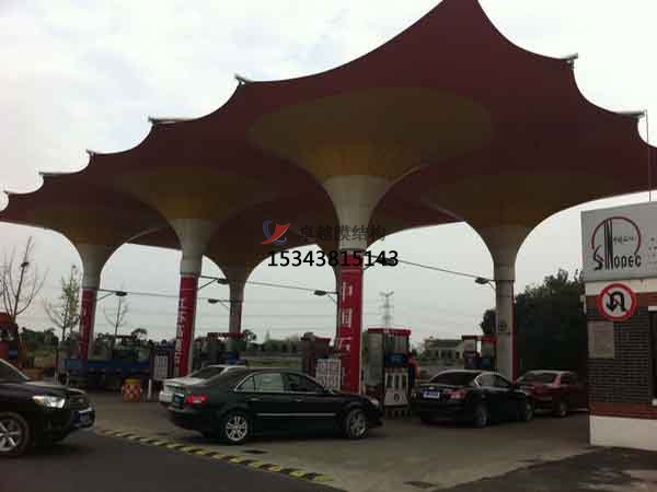 加油站膜結(jié)構(gòu),荷載態(tài)分析:張拉膜結(jié)構(gòu)自身重量很輕,僅為鋼結(jié)構(gòu)的1/5,混凝土結(jié)構(gòu)的1/40;因此膜結(jié)構(gòu)對(duì)地震力有良好的適應(yīng)性,而對(duì)風(fēng)的作用較為敏感。此外還要考慮雪荷載和活荷載的作用。