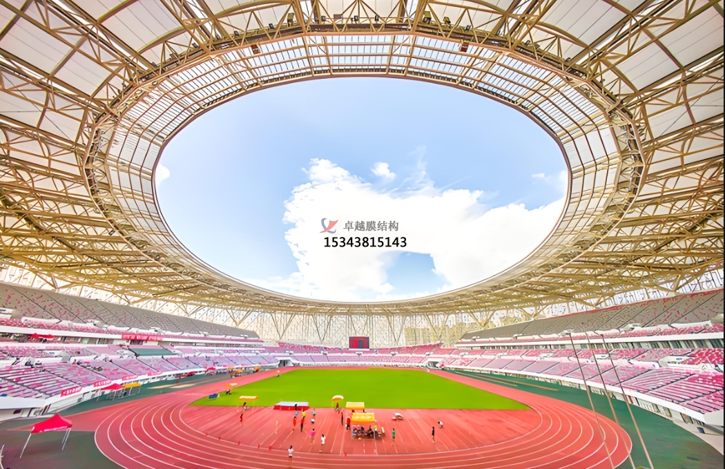 在體育場館及其他設(shè)施采用內(nèi)膜,不僅可以改善透光、吸音及保溫作用,還可以改善建筑外觀,可以將復(fù)雜的鋼結(jié)構(gòu)、馬道及各種管道等進(jìn)行遮擋,采用高通透性的網(wǎng)格膜可以使鋼結(jié)構(gòu)變得若隱若現(xiàn)。