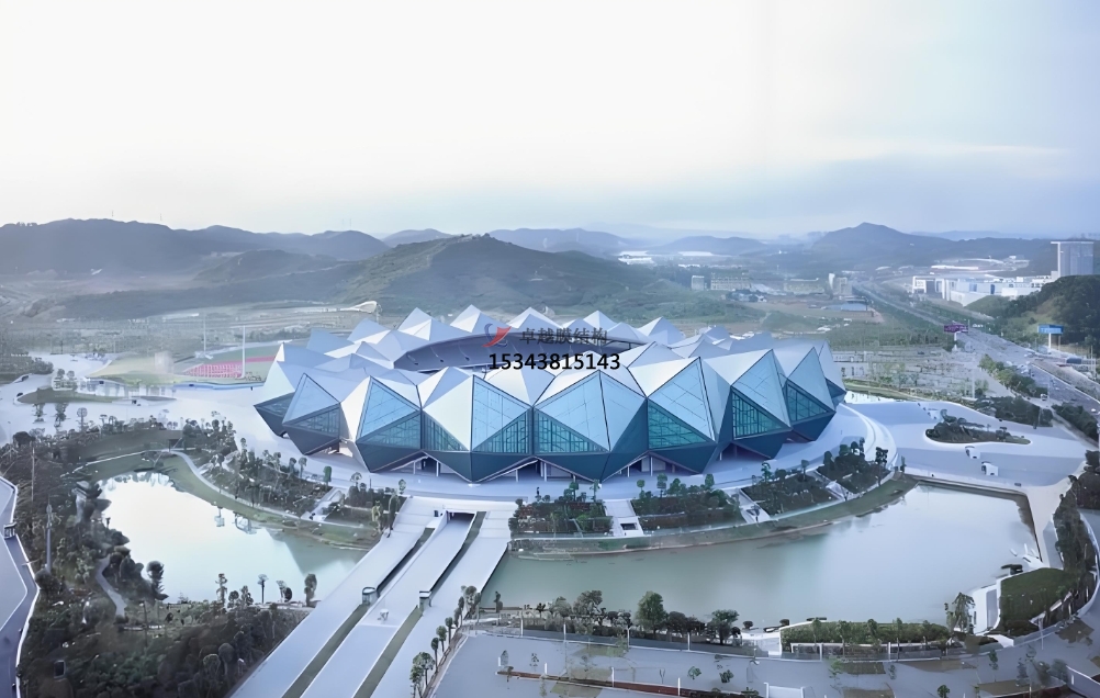 深圳大運(yùn)會(huì)體育中心一場兩館采用空間折板結(jié)構(gòu),外觀類似“鉆石”。外層采用陽光板及玻璃幕墻,內(nèi)層采用透光率高、吸音率強(qiáng)、自潔性能好的網(wǎng)格內(nèi)膜材料。深圳大運(yùn)會(huì)體育中心的網(wǎng)格內(nèi)膜面積超過10萬平方米。