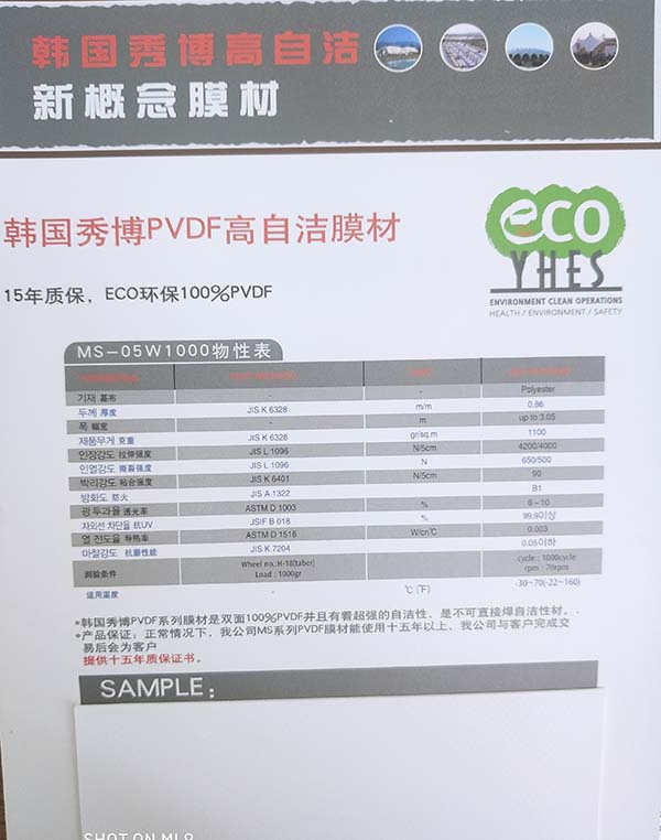 秀博工業(yè)集團(tuán)全新開發(fā)的納米抗UV,ECM膜材,全新的納米層可使膜材使用壽命達(dá)到15 年并不發(fā)黃變色,持久如新。同時通過ECO環(huán)