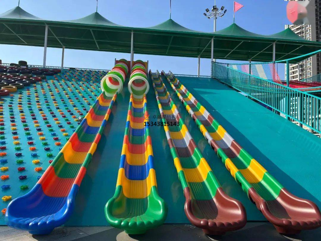 應用場景:這些彩色膜結構的游樂設備可以應用于各種場景,如公園、游樂場、商業(yè)中心等。它們可以是固定在地面上的,也可以是移動式的。一些常見的應用包括: