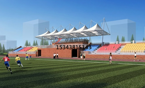 體育場看臺遮陽棚,膜結(jié)構看臺的設計主要包括體形設計、初始平衡形狀分析、荷載分析、裁剪分析等四大問題。通過體形設計確定建筑平面形狀尺寸、三維造型、凈空體量,確定各控制點的坐標、結(jié)構形式,選用膜材和施工方案。初始平衡形狀分析就是所謂的找形分析。由于膜材料本身沒有抗壓和抗彎剛度,抗剪強主芤很差,因此其剛度和穩(wěn)定性需要靠膜曲面的曲率變化和其中預應力來提高,對膜結(jié)構而言,任何時候不存在無應力狀態(tài),因此膜曲面形狀終必須滿足在一定邊界條件、一定預應力條件下的力學平衡,并以此為基準進行荷載分析和裁剪分析。目前膜結(jié)構找形分析的方法主要有動力松馳法、力密度法以及有限單元法等。膜結(jié)構考慮的荷載一般是風載和雪載。在荷載作用下膜材料的變形較大,且隨著形狀的改變,荷載分布也在改變,因此要計算結(jié)構的變形和應力要用幾何非線性的方法進行。荷載分析的另一個目的是一確定索、膜中初始預張力。在外荷載作用下膜中一個方向應力增加而另一個方向應力減少,這就要求施加初始張應力的程度要滿足在不利荷載作用下應力不致減少到零,即不出現(xiàn)皺褶。因為膜材料比較輕柔,自振頻率很低,在風荷載作用下極易產(chǎn)生風振,導致膜材料破壞,如果初始預應力施加過高,膜材涂變加大,易老化且強度儲備少,對受力構件強度要求也高,增加施工安裝難度。因此初始預應力的確定要通過荷載計算來確定。經(jīng)過找形分析而形成的摸結(jié)構通常為三維不可展空間曲面,如何通過二維材料的裁剪,張拉形成所需要的三維空間曲面,是整個膜結(jié)構工程中關鍵的一個問題,這正是裁剪分析的主要內(nèi)容。