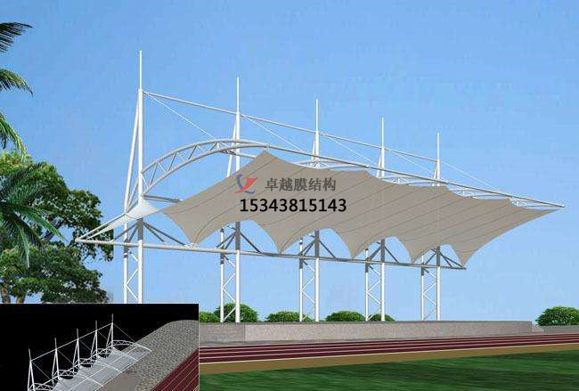 看臺膜結(jié)構(gòu)是用高強度柔性薄膜材料經(jīng)受其它材料的拉壓作用而形成的穩(wěn)定曲面,能承受一定外荷載的空間結(jié)構(gòu)形式。 其造型自由、輕巧、美,充滿力量感,阻燃、制作簡易、安裝快捷、節(jié)能易于、使用安全等優(yōu)點.因而使它在世界各地受到廣泛應(yīng)用。