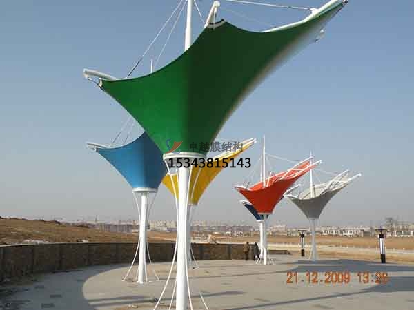 膜結(jié)構(gòu)(Membrane)是20世紀(jì)中期發(fā)展起來的一種新型建筑結(jié)構(gòu)形式,膜結(jié)構(gòu)是由多種高強(qiáng)薄膜材料及加強(qiáng)構(gòu)件(鋼架、鋼柱或鋼索)通過一定方式使其內(nèi)部產(chǎn)生一定的預(yù)張應(yīng)力以形成某種空間形狀,作為覆蓋結(jié)構(gòu),并能承受一定的外荷載作用的一種空間結(jié)構(gòu)形式。泰信膜結(jié)構(gòu)在我們的身邊用途非常廣泛,比如車棚、看臺、景觀等。膜結(jié)構(gòu)作為一種新型的建筑結(jié)構(gòu)形式,那么膜結(jié)構(gòu)的“膜”是一種什么材料呢?