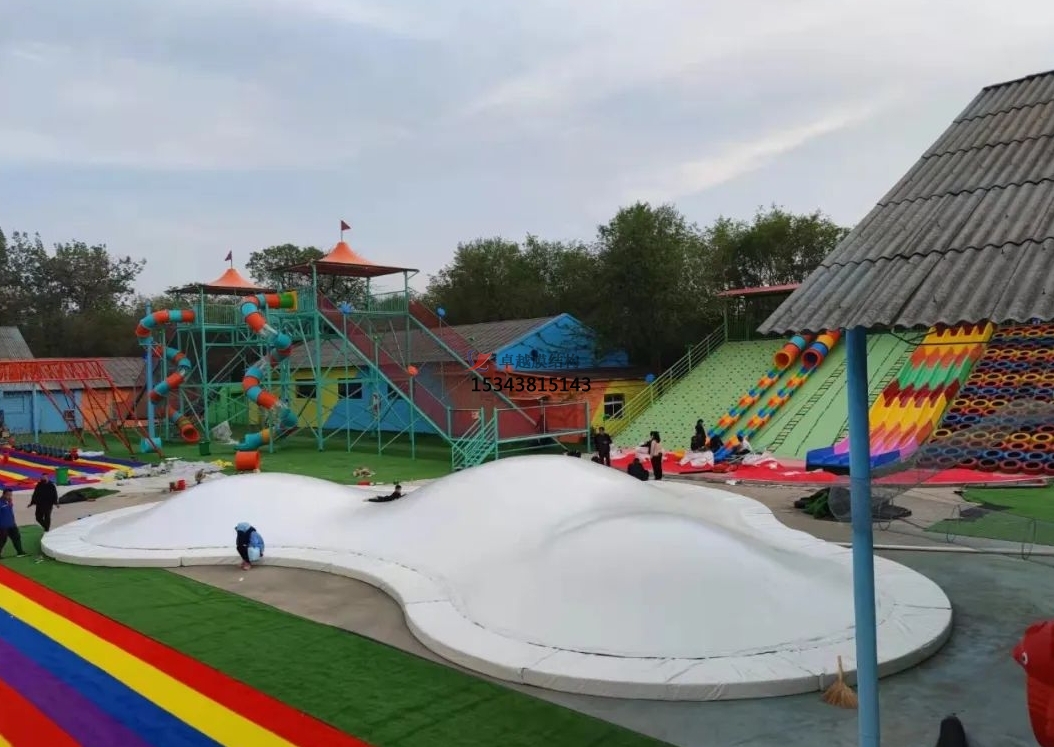 蹦蹦云的設(shè)計(jì)高度靈活,可根據(jù)場(chǎng)地環(huán)境定制形態(tài)與規(guī)模。無論是平坦空地還是起伏地形,均可通過設(shè)置沙坑、坡度或洞穴,塑造自然野趣的游樂場(chǎng)景。其純白外觀與云朵造型,既能融入景區(qū)生態(tài)景觀,也可作為商業(yè)地產(chǎn)的網(wǎng)紅打卡點(diǎn)。從親子樂園到度假村,從生態(tài)農(nóng)莊到特色小鎮(zhèn),蹦蹦云以 “可蹦、可滑、可躺” 的多維體驗(yàn),滿足全年齡段游客的互動(dòng)需求。