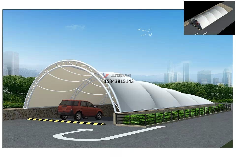 地下車庫膜結(jié)構(gòu)主要是取代地下車庫出入口的一些傳統(tǒng)雨棚,有很多優(yōu)點: