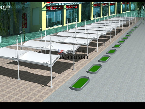 第點,膜結(jié)構(gòu)停車棚頂部封板選用茶色(色彩可挑選)陽光板封頂,與車棚全體骨架用壓條鉚接固定,耐酸堿腐蝕,有滿足強(qiáng)度對棚內(nèi)車輛起到保護(hù)效果;