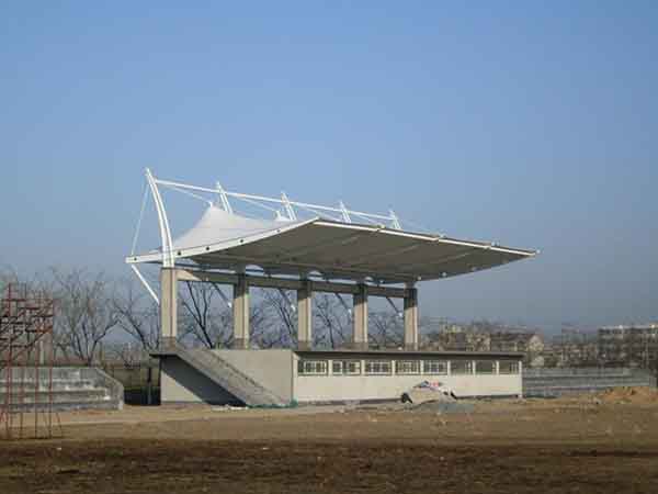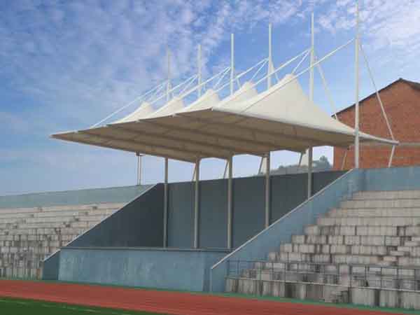 張拉膜看臺主要用于各類地方體育場主席臺雨棚,各類學(xué)校體育場看臺雨棚遮蓋,我公司是國內(nèi)較早從事大懸挑張拉膜結(jié)構(gòu)看臺設(shè)計施工的專業(yè)廠家,下面介紹一下我們在紹興市周邊縣市完工的一些張拉膜看臺設(shè)計施工案例,我公司先后在紹興周邊承接了紹興文理學(xué)院張拉膜看臺雨棚、紹興職業(yè)技術(shù)學(xué)院張拉膜看臺罩棚、浙江農(nóng)業(yè)商貿(mào)職業(yè)學(xué)院張拉膜看臺遮陽棚等設(shè)計施工項目,簡介如下:
