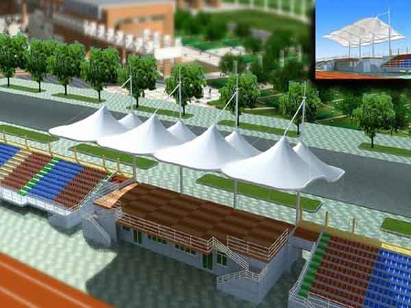1、麗水學(xué)院張拉膜看臺(tái)雨棚