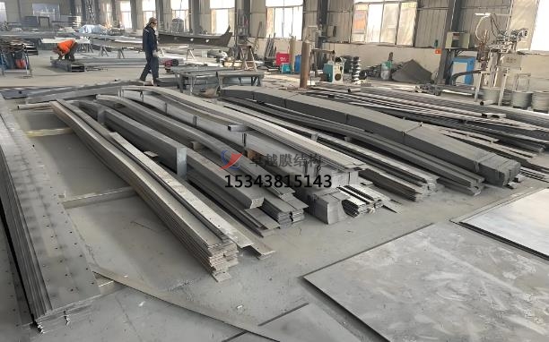 膜結(jié)構(gòu)生產(chǎn)的材料和加工:膜結(jié)構(gòu)的主要材料包括膜材和鋼結(jié)構(gòu)。根據(jù)設(shè)計(jì)要求,采購合適的膜材。常見的膜材有聚四氟乙烯(PTFE)膜材、聚氯乙烯(PVC)膜材等,采購時(shí)需注意膜材的質(zhì)量、性能和規(guī)格是否符合要求。我們的膜材通常采用進(jìn)口材料,具有高標(biāo)準(zhǔn)的阻燃、自潔和耐久性能。鋼結(jié)構(gòu)部分則根據(jù)設(shè)計(jì)圖紙進(jìn)行切割、焊接和打磨,確保其尺寸精確和表面光滑。我們會(huì)根據(jù)支撐結(jié)構(gòu)的設(shè)計(jì)要求,采購鋼材、鋁合金等材料,并進(jìn)行檢驗(yàn)和預(yù)處理,如除銹、防腐處理等。膜材的加工包括裁剪和焊接,使用先進(jìn)的裁剪及焊接生產(chǎn)線進(jìn)行,確保膜材的拼接精確和牢固。鋼結(jié)構(gòu)部分則通過CAD編輯到等離子切割,割出形狀后,用扁鐵包邊、打磨和刷油漆,確保其質(zhì)量和外觀。膜結(jié)構(gòu)的加工制作,膜結(jié)構(gòu)的展開形狀和尺寸,結(jié)合膜材的幅寬和特性,進(jìn)行裁剪設(shè)計(jì),確定每一塊膜片的形狀和尺寸,同時(shí)考慮到拼接縫的位置和方式,以減少材料浪費(fèi)和提高結(jié)構(gòu)性能。裁剪會(huì)使用到專業(yè)的裁剪設(shè)備,如數(shù)控裁剪機(jī),按照裁剪設(shè)計(jì)的圖紙對(duì)膜材進(jìn)行精確裁剪。裁剪過程中要注意控制裁剪精度,避免出現(xiàn)尺寸偏差和邊緣損傷。拼接縫合,將裁剪好的膜片通過熱合、縫合等方式進(jìn)行拼接,形成完整的膜結(jié)構(gòu)。拼接處要保證密封性能和強(qiáng)度,通常采用專用的膜材焊接設(shè)備或縫紉機(jī)進(jìn)行加工。支撐結(jié)構(gòu)的制作,支撐結(jié)構(gòu)也叫預(yù)埋件,預(yù)埋件的制作根據(jù)膜結(jié)構(gòu)的大小和設(shè)計(jì)要求進(jìn)行,厚度和長寬由CAD編輯到等離子切割而來‌。基礎(chǔ)施工包括放線、切割地面、挖機(jī)破碎地面、混凝土放預(yù)埋板和地面修復(fù)等步驟。安裝過程中,將膜材與鋼結(jié)構(gòu)進(jìn)行精確連接,確保膜結(jié)構(gòu)的張拉和固定,使其在實(shí)際應(yīng)用中能夠承受各種環(huán)境條件,確保膜結(jié)構(gòu)的穩(wěn)固安裝。