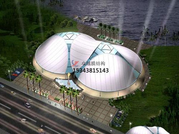膜結(jié)構(gòu)突破了傳統(tǒng)的建筑結(jié)構(gòu)形式,具有造型優(yōu)美、飄逸自然、融藝術(shù)、力學(xué)于一體,可充分發(fā)揮建筑師的想象力,建造成各種造型,且色彩豐富,膜結(jié)構(gòu)被譽為21世紀的現(xiàn)代高科技綠色建筑。