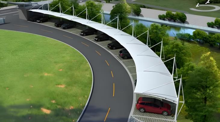 一 膜結(jié)構(gòu)雨棚特點和優(yōu)勢主要體現(xiàn)在造型美觀,自潔性強,輕便耐用,施工便捷,‌環(huán)保節(jié)能。膜材具有良好的可塑性,可設計出各種獨特的造型,如曲線形、球形、錐形等,為建筑增添藝術(shù)美感。膜材料透光率可達30%,在陽光下不會變黃或霧化,可實現(xiàn)自然采光,降低白天照明能耗,同時提供柔和均勻的光線。膜材料表面防護涂層如聚氟乙烯等,有著不發(fā)粘的特性,灰塵等污染物可依靠雨水自然沖洗達到自潔效果,保持雨棚外觀整潔。膜材重量輕,高強度膜材與張拉技術(shù)應用減少了雨棚整體重量,使膜結(jié)構(gòu)雨棚抵御風雨能力強,對支撐結(jié)構(gòu)要求較低,且高強度膜材配合合理的結(jié)構(gòu)設計,使其能抵御多種惡劣天氣,使用年限可達25年以上,膜材強度是普通玻璃的250-300倍,部分采用永久性膜材的車棚可使用三、四十年。相比傳統(tǒng)建筑雨棚,我們的膜材和鋼結(jié)構(gòu)在工廠預制,縮短工期,現(xiàn)場安裝速度快,施工周期短,對周圍環(huán)境影響小。同等大小的建筑,采用膜結(jié)構(gòu)成本只相當于傳統(tǒng)建筑的二分之一或更少,短期應用的大跨度建筑時更經(jīng)濟。且膜結(jié)構(gòu)還具有良好的隔熱性能,可減少能源消耗,部分設計還可利用太陽能發(fā)電。