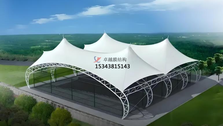 三 膜結(jié)構(gòu)雨棚的應用領(lǐng)域:商業(yè)領(lǐng)域,交通領(lǐng)域,體育領(lǐng)域,景觀領(lǐng)域。商業(yè)領(lǐng)域,商場、購物中心、商業(yè)街等的入口、廣場、停車場等位置,可提供遮陽避雨的空間,同時增加空間利用率‌,其新穎的造型設計成為景觀亮點可吸引顧客,提升商業(yè)氛圍。交通領(lǐng)域,在機場、火車站的候車廳,高速公路服務區(qū)、收費站、公交站臺等地方,能為旅客提供舒適的候車環(huán)境。體育領(lǐng)域,大型體育館以及體育看臺常采用膜結(jié)構(gòu)雨棚,其大跨度特性可滿足視野寬闊無結(jié)構(gòu)遮擋的要求,且膜材透光性可使白天室內(nèi)達到和室外幾乎一樣的自然效果,體育館、體育場、游泳館等體育場館的入口、看臺、休息區(qū)等,可保護觀眾和運動員免受風雨侵襲,增強場館的整體美觀度。景觀領(lǐng)域,公園、廣場、花園、景區(qū)等地方,作為景觀小品或休息設施,為人們提供休息、觀賞的空間,與自然環(huán)境相融合,增添景觀的現(xiàn)代感,膜結(jié)構(gòu)雨棚與周圍環(huán)境融為一體可創(chuàng)造出浪漫溫馨的空間,在夜間彩燈映射下形成絢麗繽紛的景觀。工業(yè)領(lǐng)域,膜結(jié)構(gòu)廠房具有結(jié)構(gòu)輕便、抗震性好等特點,廣泛應用于各類工廠,也可用于一些倉庫、污水處理設施等的覆蓋。‌