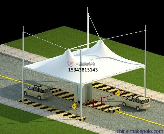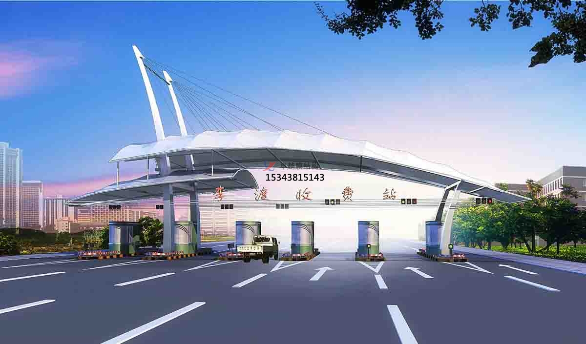 收費(fèi)站膜結(jié)構(gòu)的弧形線條是在體現(xiàn)膜材料得柔性性能的同時(shí)是充分得展現(xiàn)了膜結(jié)構(gòu)建筑的優(yōu)雅內(nèi)涵,其柔美特點(diǎn)與高速路的剛性與速度特點(diǎn)形成了鮮明的對(duì)比。同時(shí),收費(fèi)站膜結(jié)構(gòu)外形也延續(xù)了中國(guó)建筑中對(duì)稱的傳統(tǒng)特點(diǎn),在視覺上也滿足了大眾的審美觀。