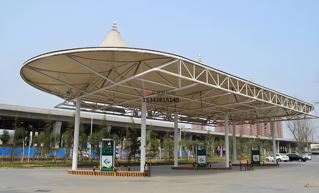 高速公路服務(wù)區(qū)加油站:高速公路服務(wù)區(qū)加油站車流量大,對設(shè)施的耐用性和快速施工要求較高。膜結(jié)構(gòu)頂棚憑借其長使用壽命、便捷施工等優(yōu)勢,能在短時間內(nèi)完成建設(shè),滿足服務(wù)區(qū)快速投入使用的需求。同時,其美觀的造型也能為長途奔波的司乘人員帶來良好的視覺感受,提升服務(wù)區(qū)的整體形象。
