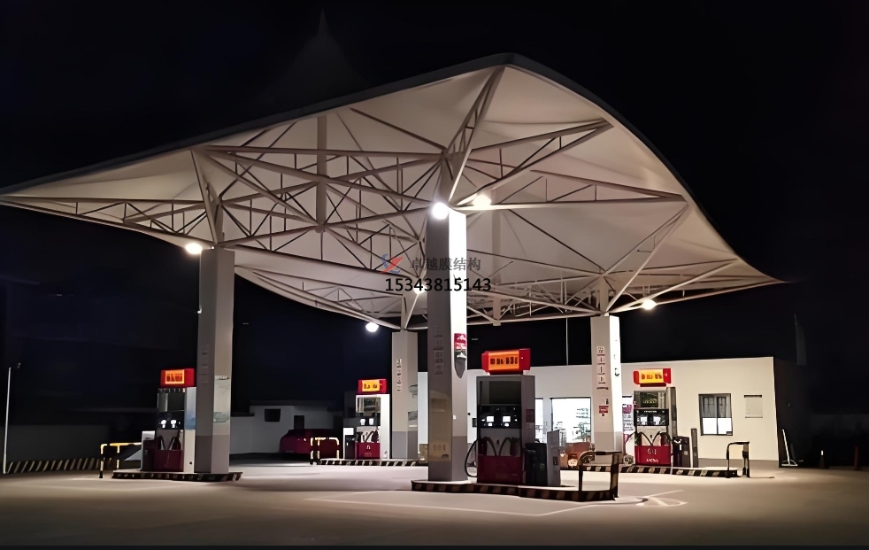 傳統(tǒng)加油站:在傳統(tǒng)加油站建設(shè)中,膜結(jié)構(gòu)頂棚已成為主流選擇。其卓越的耐候性和自潔性能,能始終保持加油站外觀整潔;良好的透光性優(yōu)化了室內(nèi)照明條件,提升加油作業(yè)效率;堅(jiān)固的結(jié)構(gòu)設(shè)計確保了設(shè)施的耐用性和安全性,為加油站的長期穩(wěn)定運(yùn)營提供有力保障。