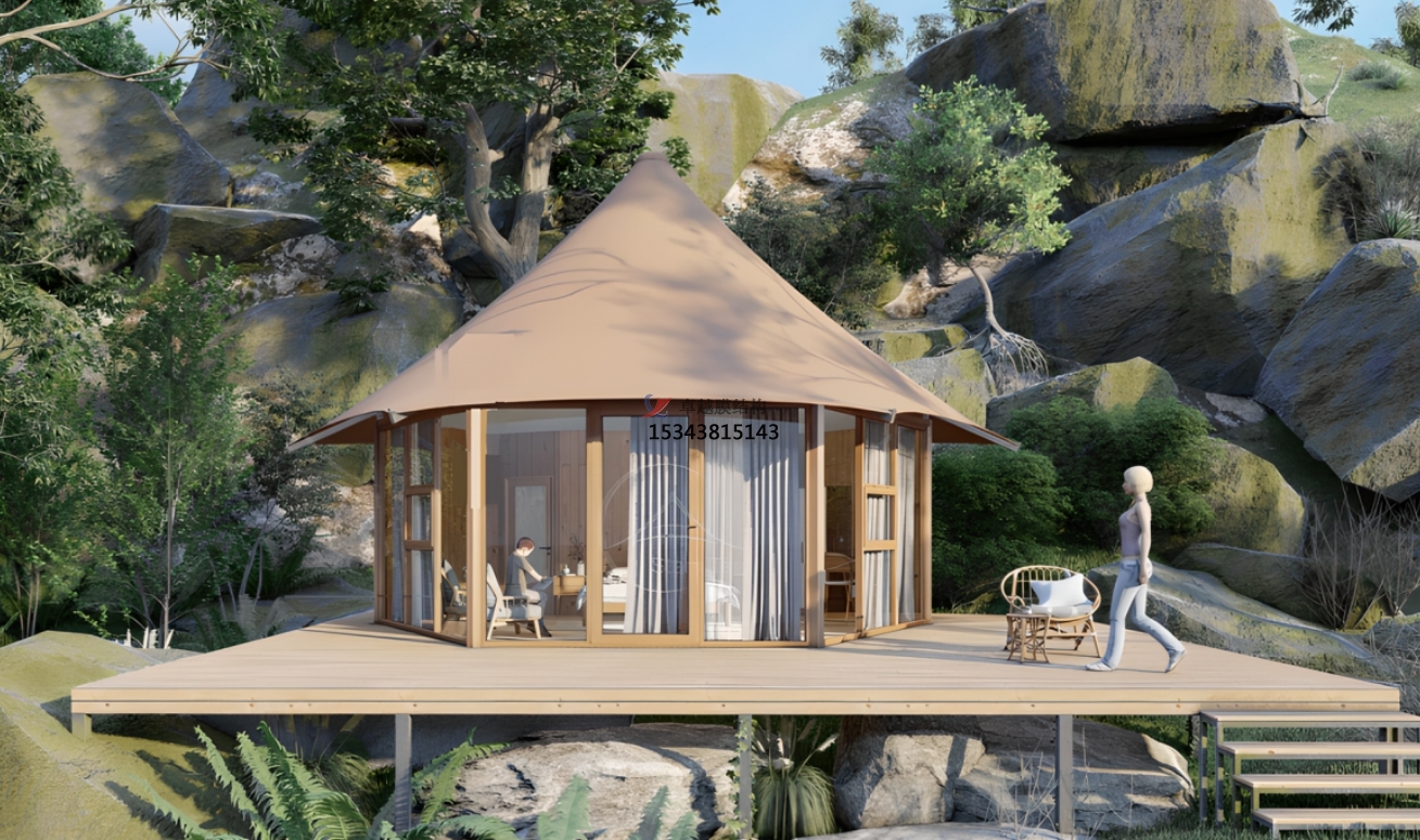 膜結構式帳篷酒店的核心在于其采用的先進膜結構技術。這種結構以高分子材料制成的薄膜為主要構件,通過精確的計算與設計,形成既輕盈又穩(wěn)固的建筑形態(tài)。與傳統(tǒng)的磚混或鋼結構相比,膜結構不僅大大減輕了建筑的自重,降低了對地基的要求,而且其流線型的外觀和半透明的材質,使得酒店仿佛與自然融為一體,讓旅客在享受舒適住宿的同時,也能近距離感受大自然的魅力。