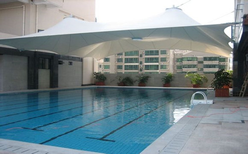 近幾年膜結(jié)構(gòu)車棚遮陽棚、看臺遮陽棚已廣泛應(yīng)用,試想一下游泳池藍(lán)天碧水之間搭配造型獨特的張拉膜遮陽棚或遮陽亭,是一種多么和諧的視覺享受。泳池膜結(jié)構(gòu)遮陽棚不僅外形亮眼,更重要的是它具備高強度、高耐久性、防紫外線和隔溫效果,讓人們戲水的同時更覺愜意。