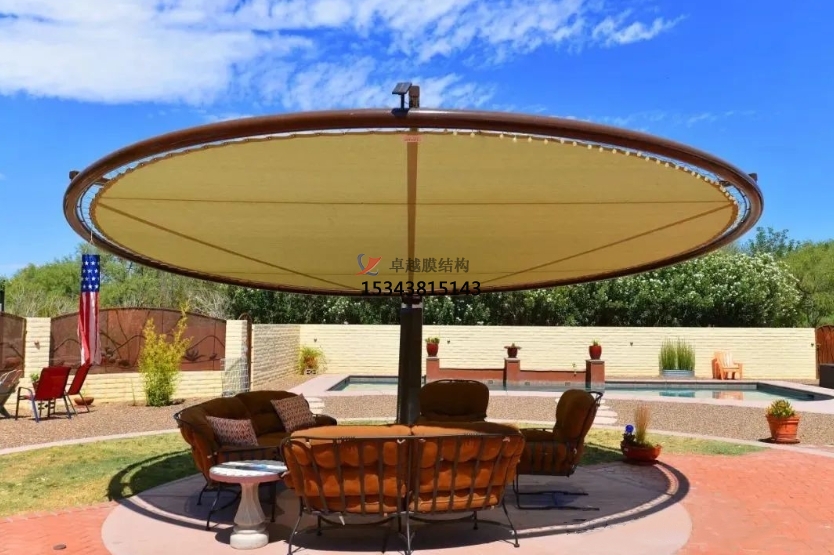 在休閑廣場(chǎng)等公共場(chǎng)所的建設(shè)中,一些功能性的景觀設(shè)施必不可少,如景觀遮陽棚、景觀連廊及景觀標(biāo)識(shí)建筑等。這就不得不提膜結(jié)構(gòu),作為新型的建筑材料和設(shè)計(jì)概念的結(jié)合體,膜結(jié)構(gòu)已占據(jù)了公共場(chǎng)所的建設(shè)中的一席之地。