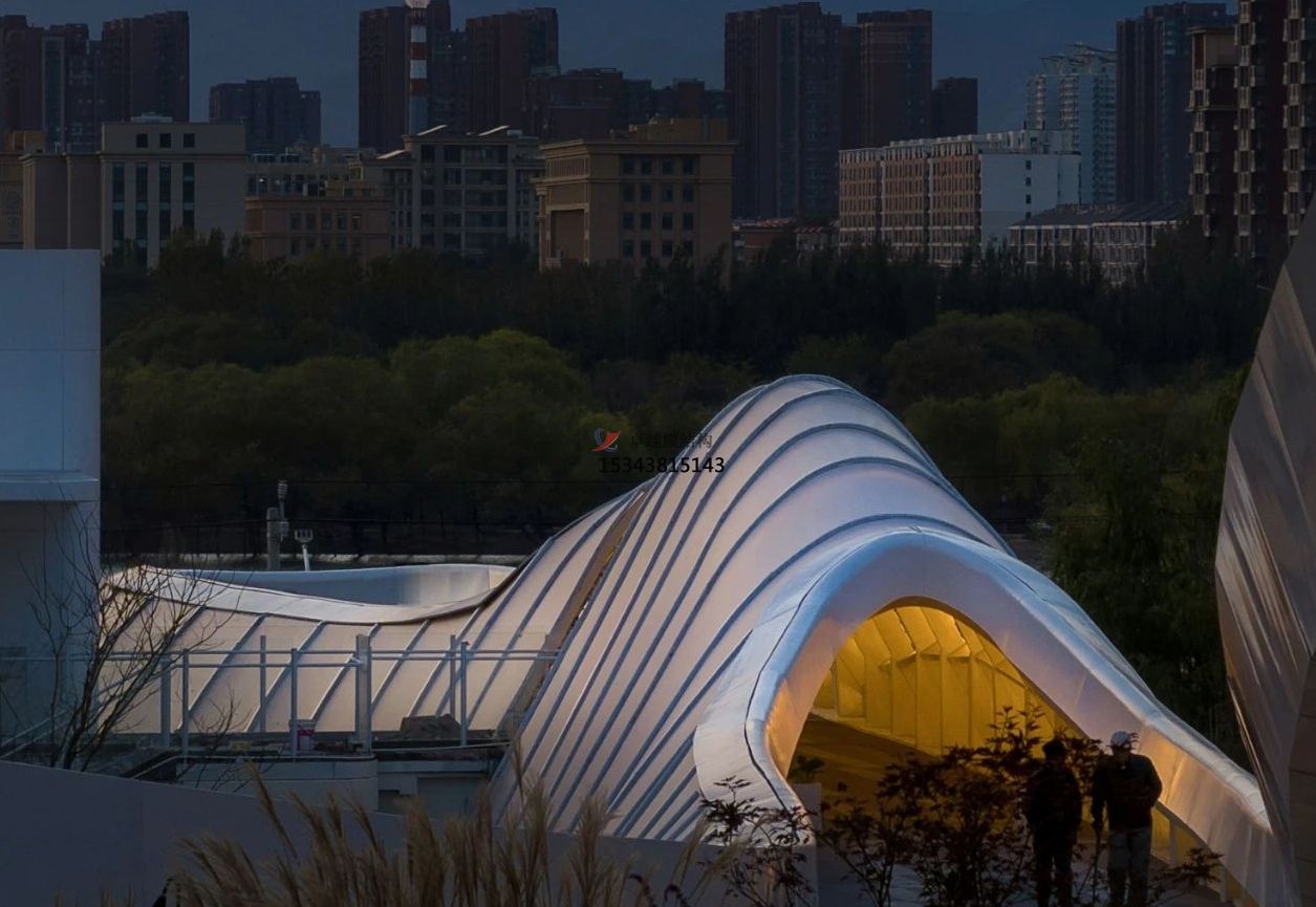 內(nèi)部的燈光照明透過膜材微微泛出一些光澤,仿佛陽光照在水滴之上。