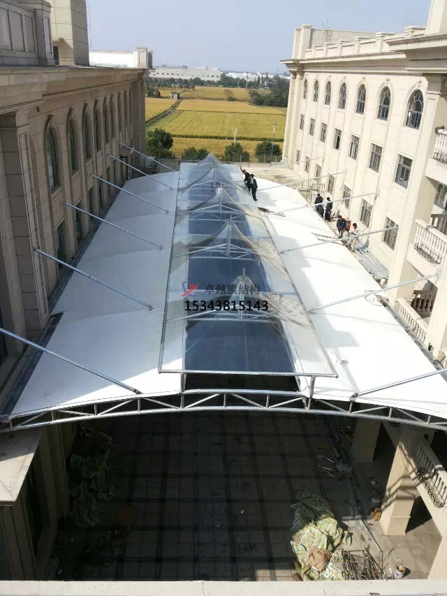 更好的經(jīng)濟效益體現(xiàn),PTFE膜結(jié)構(gòu)屋面, 重量僅常規(guī)鋼結(jié)構(gòu)屋面的三十分,這樣也大大的降低了墻體和基礎(chǔ)的造價。同時膜結(jié)構(gòu)施工建筑新穎、奇特的造型和整體效果有明顯的商業(yè)效應(yīng),價格效益更高。且施工周期更短,甘肅PTFE膜結(jié)構(gòu)工程中的鋼結(jié)構(gòu)構(gòu)件加工,和制作設(shè)計均可在工廠內(nèi)完成,現(xiàn)場只需進行安裝即可。相比傳統(tǒng)建筑施工周期,效率提升一倍以上。