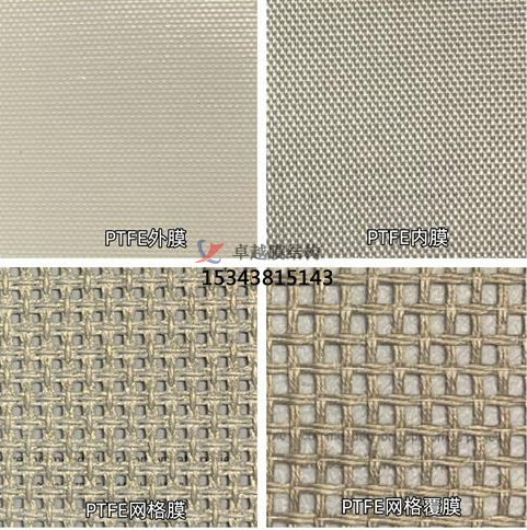 PTFE 網(wǎng)格覆膜:是在 PTFE 網(wǎng)格膜之上增加一層透明膜,如 PTFE、ERT 透明乳膠、ETFE 等,在保持高透光的同時(shí),還能起到防雨防水的作用。