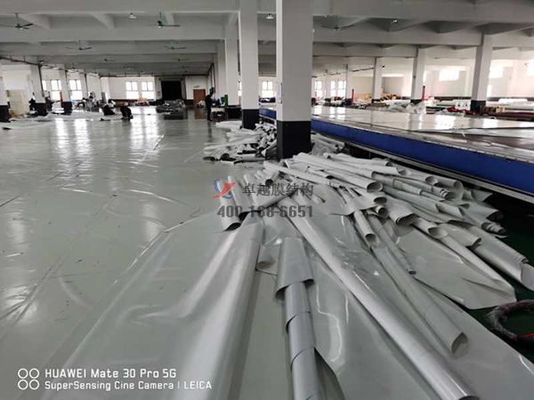 2、同一膜結(jié)構(gòu)工程宜使用同一企業(yè)、同一批號(hào)的膜材。每批膜材均應(yīng)具有產(chǎn)品質(zhì)量保證書和檢查報(bào)告,并應(yīng)進(jìn)行進(jìn)貨抽檢。膜材表面應(yīng)無(wú)針孔,無(wú)明顯褶皺和明顯污漬,不應(yīng)出現(xiàn)斷絲、裂縫和破損現(xiàn)象,色澤應(yīng)無(wú)明顯差異。