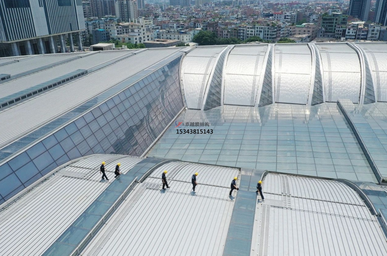 高鐵站膜結(jié)構(gòu)是一種新型的建筑結(jié)構(gòu)形式,它采用高強度柔性薄膜材料與支撐體系相結(jié)合,通過一定的技術(shù)手段,使其內(nèi)部產(chǎn)生一定的預(yù)張力,從而形成具有一定剛度和穩(wěn)定性的空間結(jié)構(gòu)體系。這種結(jié)構(gòu)形式具有重量輕、跨度大、造型美觀、施工速度快等優(yōu)點,能夠滿足高鐵站大空間、大跨度的建筑需求。