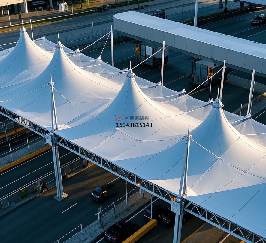 天然采光:選用透光性膜材,能充分使用天然光照明,削減白天對人工照明的依靠。這不只降低了能源消耗,還營造出明亮、舒適的收費環(huán)境,提高收費人員工作功率 。