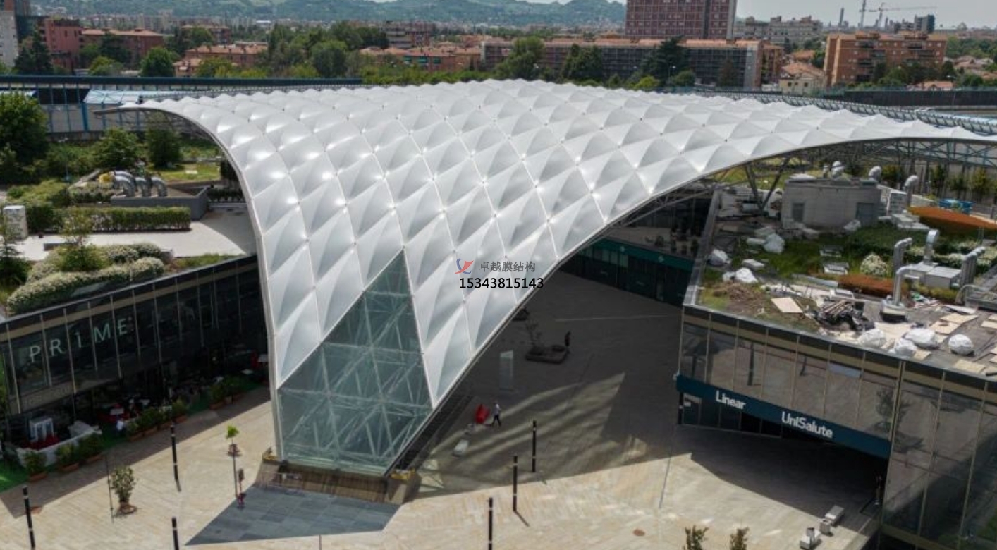 膜結(jié)構(gòu)雨棚采用輕便的材料建造,施工周期短,節(jié)約了能源和材料。同時,它還能減少商場內(nèi)部空調(diào)系統(tǒng)的負荷,降低能耗。