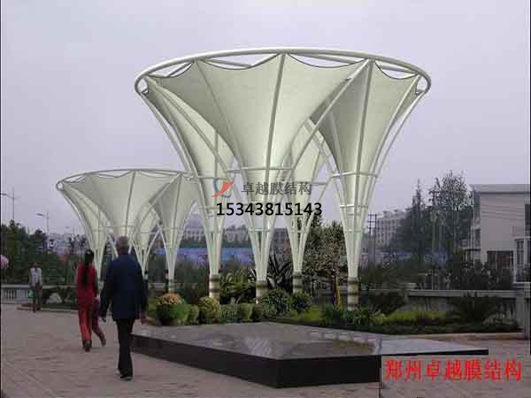 一個(gè)城市的中心區(qū)反映一個(gè)城市的地理風(fēng)貌和民族風(fēng)情,同時(shí),也是一個(gè)城市文化發(fā)展程度的標(biāo)志。而景觀設(shè)計(jì)要求其具有廣泛的可讀性、雅俗共賞,既有超凡脫俗的藝術(shù)價(jià)值,又能使大眾喜聞樂(lè)見(jiàn)與大眾息息相通。膜結(jié)構(gòu)以其輕盈飄逸的造型、柔美并帶有力量的曲線和大跨度和大空間的鮮明個(gè)性和標(biāo)識(shí)性,應(yīng)用于城市小品設(shè)計(jì)中。