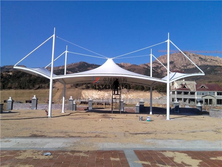 因為景觀膜結(jié)構(gòu)遮陽棚是由多種高強薄膜資料及加強構(gòu)件經(jīng)過必定方法使其內(nèi)部發(fā)生必定的預(yù)張應(yīng)力以構(gòu)成某種空間形狀,作為掩蓋結(jié)構(gòu),并能接受必定的外荷載效果的一種空間結(jié)構(gòu)方式。