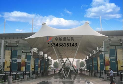 一個城市的中心區(qū)反映一個城市的地理風(fēng)貌和民族風(fēng)情,同時,也是一個城市文化發(fā)展程度的標(biāo)志。而景觀設(shè)計(jì)要求其具有廣泛的可讀性、雅俗共賞,既有超凡脫俗的藝術(shù)價值,又能使大眾喜聞樂見與大眾息息相通。膜結(jié)構(gòu)以其輕盈飄逸的造型、柔美并帶有力量的曲線和大跨度和大空間的鮮明個性和標(biāo)識性,應(yīng)用于城市小品設(shè)計(jì)中。