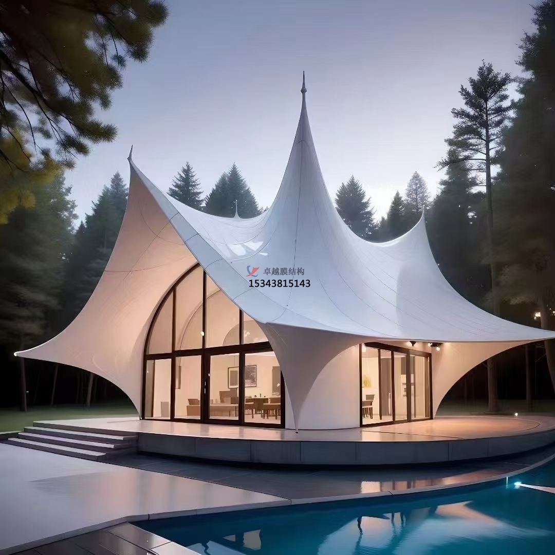 山區(qū)景觀中,膜結(jié)構(gòu)與山體輪廓契合無間。登山步道休息亭采用與山勢呼應(yīng)的造型,如順山勢起伏的波浪形或類山峰輪廓的三角形,仿若自然生長于山體之中。膜材顏色選取與巖石、植被相近色調(diào),強(qiáng)化與自然景觀協(xié)調(diào)性。海濱景觀里,膜結(jié)構(gòu)與大海沙灘相互映襯。海邊沙灘浴場遮陽棚以通透膜材構(gòu)建,人們遮陽同時飽覽海景,輕盈造型與海浪動態(tài)呼應(yīng),海風(fēng)吹拂下?lián)u曳生韻,成為海濱景觀重要組成部分。