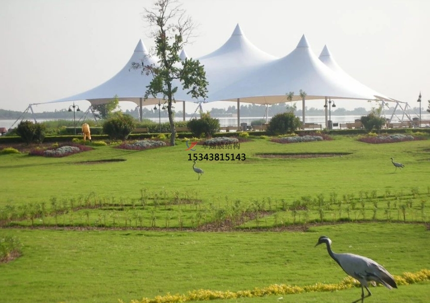 膜結(jié)構(gòu)通透特質(zhì)使區(qū)域既相對獨(dú)立又彼此關(guān)聯(lián),游客游覽時感受空間轉(zhuǎn)換變化,增添景觀趣味性與層次感。同時,膜結(jié)構(gòu)作為景觀視覺焦點(diǎn),在空曠草坪或廣場上,獨(dú)特造型的景觀亭或雕塑吸引目光,使景觀布局更趨均衡且富有吸引力。