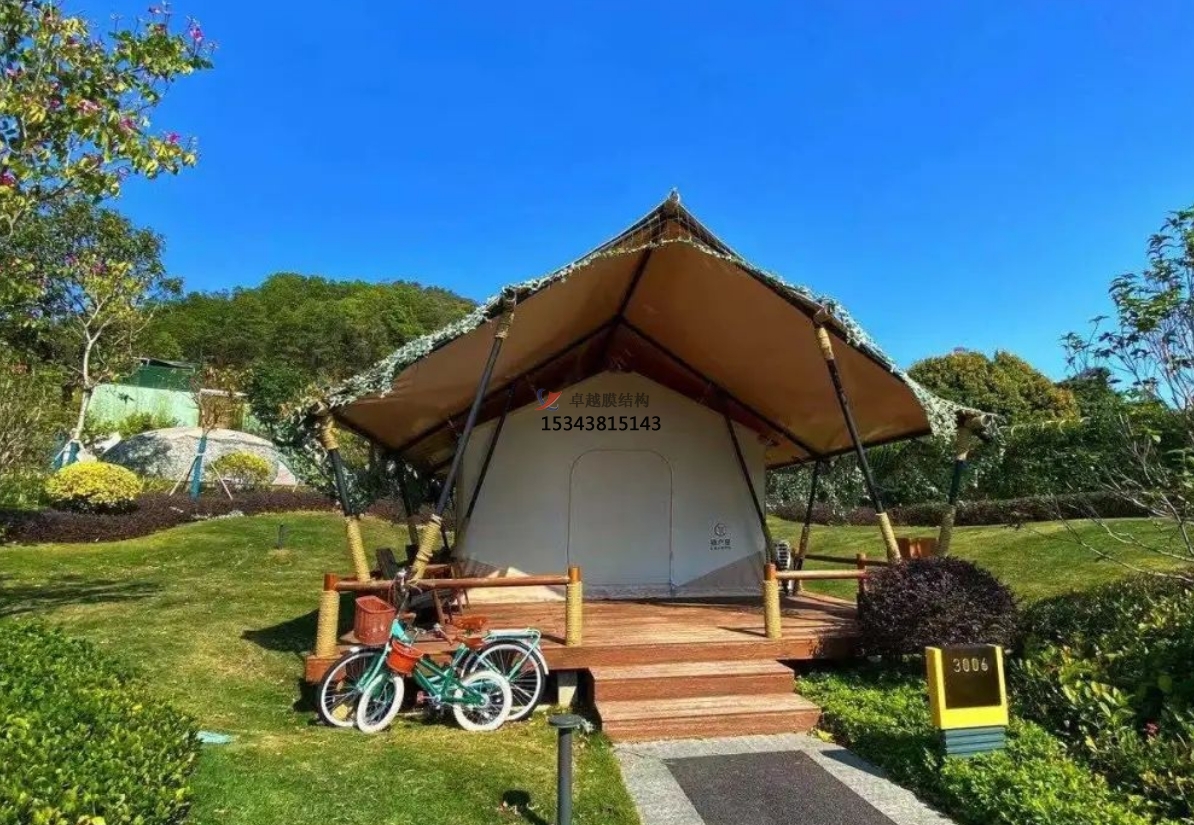 除了其獨特外觀和快速搭建的特點,膜結構帳篷酒店還具有良好的透光性,使室內(nèi)充滿自然光線,營造舒適的環(huán)境。此外,優(yōu)異的隔熱和防水性能提供了舒適的室內(nèi)溫度和防水保護,讓住客能夠享受穩(wěn)定的溫度和舒適的住宿環(huán)境。